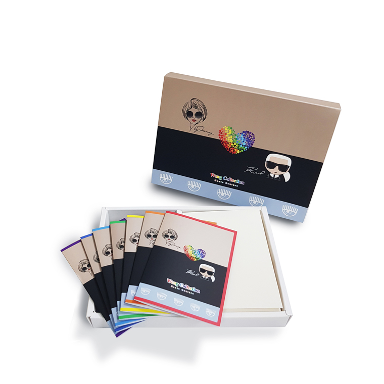 喜歡用字裡行間傳達愛或是個老佛爺迷的你更不可錯過了!彩虹愛心卡禮盒中含7張七色彩虹精美卡片+7個質感信封以及手繪感的Weng CollectionXKARL LAGERFELD Logo禮盒,而透過這樣愛心認購的方式,就好像透過寫信也繼續蔓延傳遞這份愛呢!