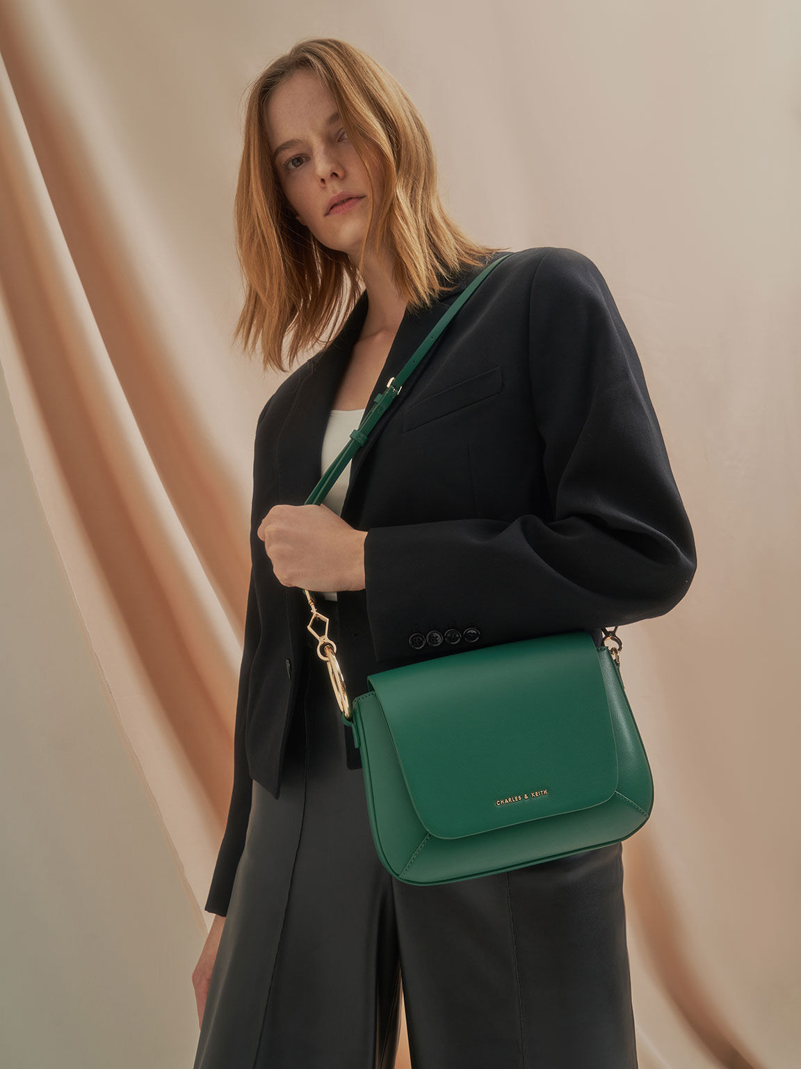 只有一款小CK包推薦是否不夠過癮,馬上為您獻上這顆以飽和綠色光澤為重點的斜背包,圓弧的線條包款設計,讓人有飽滿融合卻不失個性的氣質,綠色也許是大家少嘗試的選擇,但它總能跳脫出女性化的框架,少了一分嬌氣,更多了一分幹練感,介於古典和新潮之間的皮革色澤,像一塊蘊藏千年智慧的寶石,尤其這款包拿掉斜背袋,側邊的圓形金屬環還能成為手拿包,一包多用的功能實為方便。
